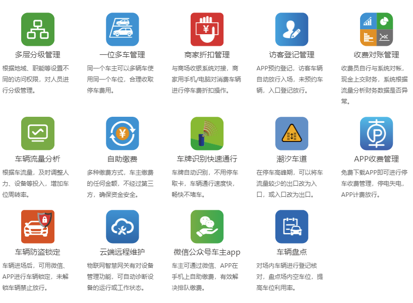 商业综合解决方案发表时间:2020-03-04 20:25 商业中心区的特点是人口密集、车流量大,常常会因为车辆太多导致区域道路交通拥堵,因此有效管理车辆、减少拥堵是要解决的重要问题之一。在解决车辆拥堵的同时,如何有效降低管理和运维成本也是急需考虑的问题。面对消费车辆,商业中心如何实现车主在场内快速停车引导、车辆停放位置查询、购物停车优惠、自助缴费等一系列功能呢? 通过对商业停车场各方面的功能需求分析,德立云基于物联网技术提出了商业中心停车场管理的应用方案,采用高清车牌识别技术和快速道闸技术,以车辆快速通行管理、自助缴费机缴费、中央现金收费、自助微信或支付宝扫码缴费、消费车辆停车费打折、找车查询、取车导航等核心功能,彻底解决场内场外拥堵,提高资源利用率。 应用场景 适用于集商务、休闲、办公等功能于一体的CBD中心区,或一些大型超市为龙头的商业区等。这些商业中心停车场的规模较大,一般都有几百乃到几千个车位。